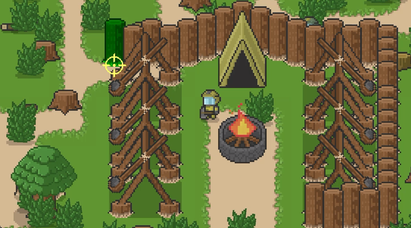 - Construye tiendas de campaña para atraer supervivientes que pueden automatizar tareas y ayudarte a defender la base.